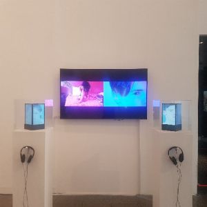 ‘Nostalgia for a Future’ sets up an imagined world where interpretations of two personal relationships are mediated through a vision that portrays a world through a synthetic lens., accompanied by haunting electro static soundtrack, juxtaposed against surrealist piano, music box motif and ambiguous narrative composed by Edwin Hind